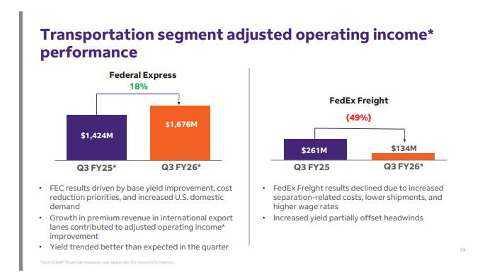 Een tweede factor die aandacht krijgt, is de geplande splitsing van FedEx in afzonderlijke onderdelen voor Express en Freight. Volgens sommige beleggers wordt vooral de Freight-divisie al jaren te laag gewaardeerd binnen het concern.