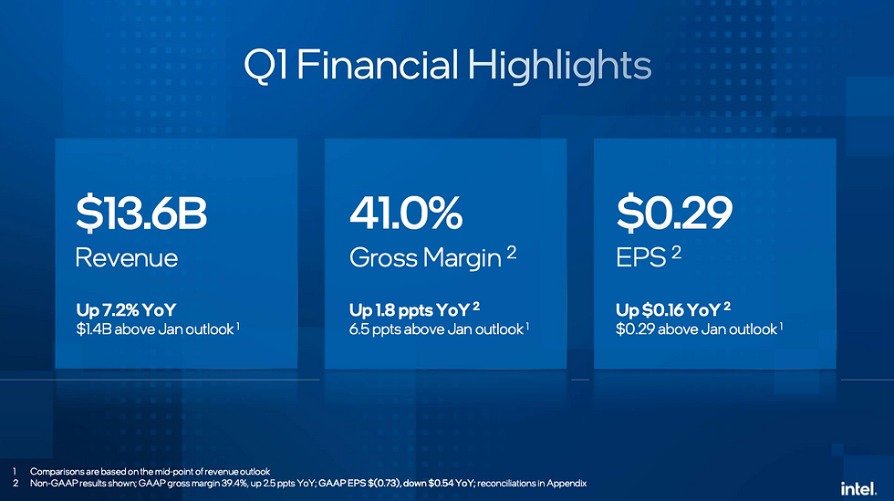 Intel verraste beleggers met sterke kwartaalcijfers en een forse koersstijging, mede dankzij beter dan verwachte omzet en vooruitzichten.