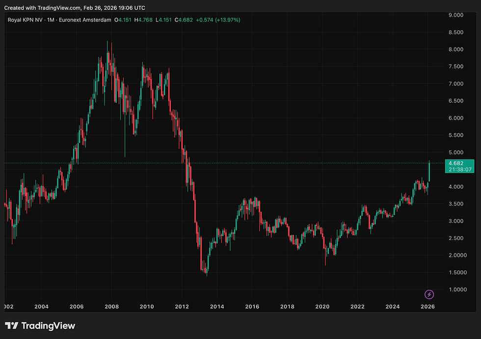 Concurrent KPN profiteert zichtbaar van dit sentiment op de kapitaalmarkt. Waar Odido nog bezig is met het integreren van systemen, netwerken en interne processen, presenteert KPN zich als een stabiele speler met een duidelijke glasvezelstrategie en consistente kasstromen. Die voorspelbaarheid maakt het aandeel aantrekkelijker voor institutionele beleggers die veiligheid zoeken in onrustige tijden. De vergelijking pakt voor Odido ongunstig uit, juist omdat het bedrijf nog midden in een strategische herpositionering zit en daardoor minder voorspelbaar oogt.