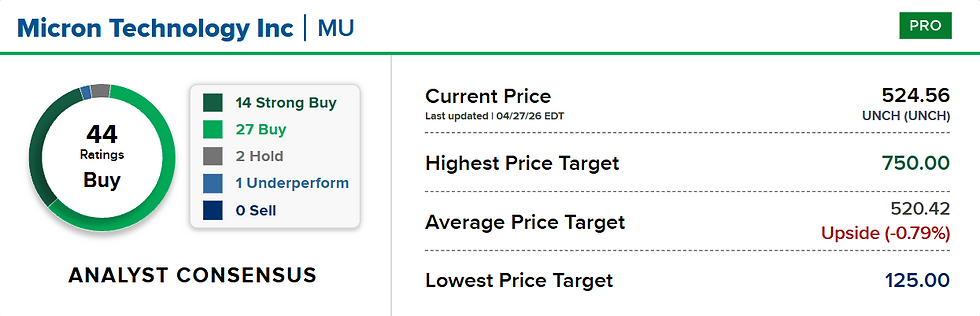 Op operationeel vlak liggen de verwachtingen hoog. Analisten zien potentieel voor enorme omzetgroei richting het einde van dit decennium, met scenario’s waarin Micron richting honderden miljarden omzet kan groeien. Dat klinkt extreem, maar moet geplaatst worden in de context van een explosief groeiende AI markt.