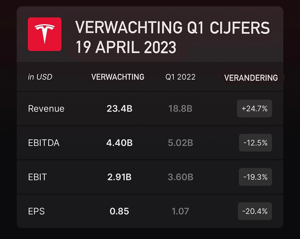Tesla staat op het punt om haar resultaten van het eerste kwartaal bekend te maken. Veel beleggers zijn benieuwd naar de gevolgen van prijsverlagingen voor de marges en de vraag naar Tesla's elektrische voertuigen. We bespreken wat analisten verwachten en wat dit betekent voor het bedrijf en de aandelenkoers.. die zijn namelijk ERG verdeeld zoals altijd over Tesla.