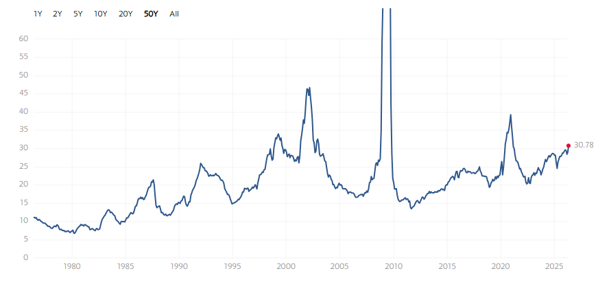 Dat trekt aandacht, omdat deze indicator historisch vaak wordt gebruikt om te beoordelen of de beurs overgewaardeerd is. Nu de S&P 500 rond recordniveaus beweegt en waarderingen stevig zijn opgelopen, groeit opnieuw de vraag of Amerikaanse aandelen te duur zijn geworden.